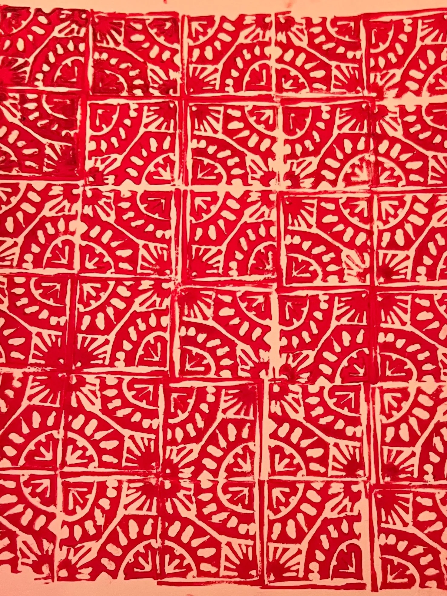 I have been loving making little square linocuts and then making larger patterns out of them!