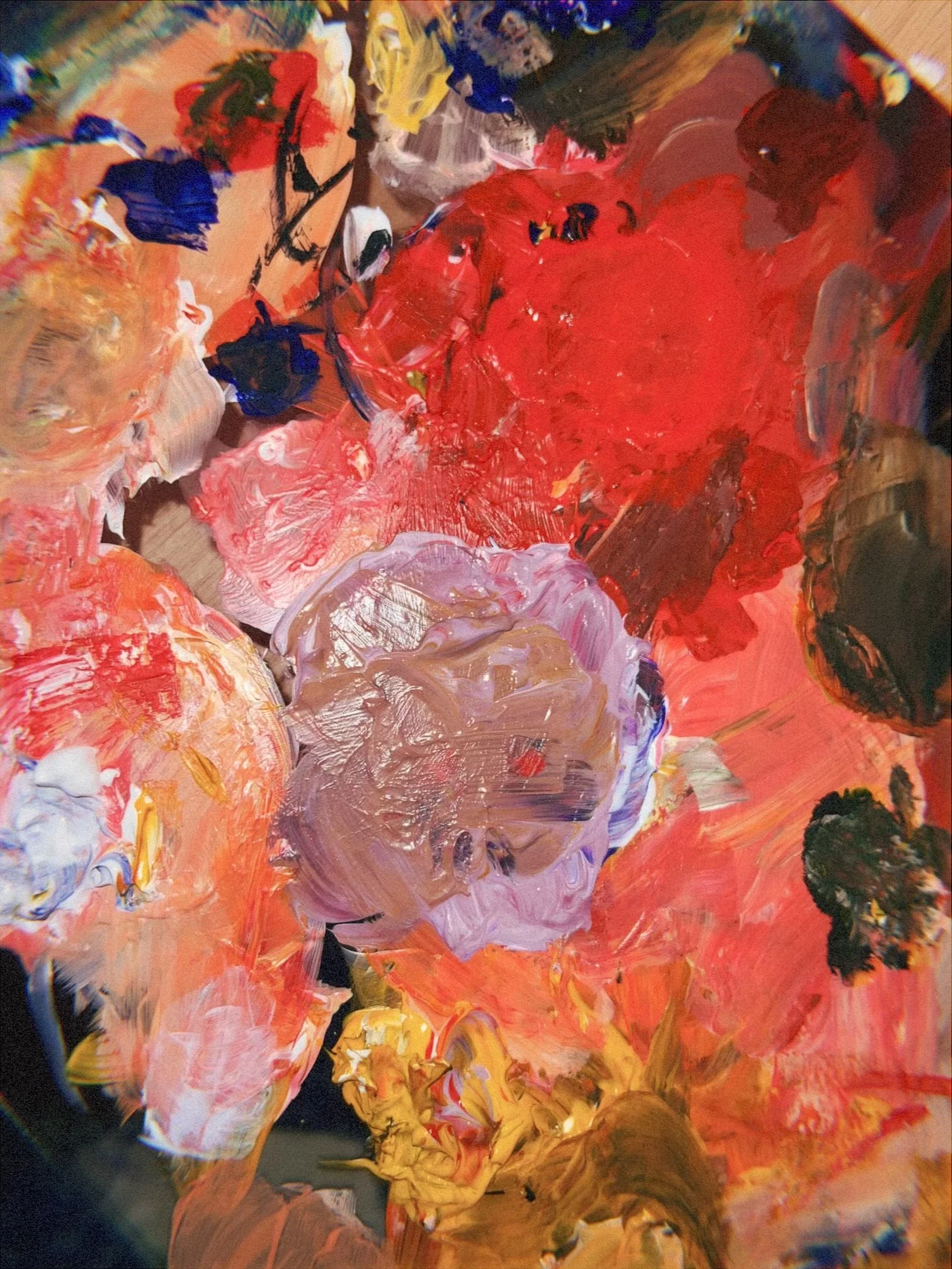 I work with bold, often heightened color and loose, insistent linework, allowing marks to remain visible and imperfect. Process is an essential part of the meaning: brushstrokes, revisions, and texture are left intact as evidence of time, attention, and feeling. Rather than aiming for realism or polish, I prioritize emotional accuracy—how something feels to look at, hold, or live with.
